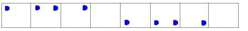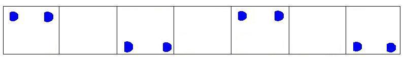 De telgang is een zuiver laterale gang. Hoewel: als je goed kijkt, zijn er meer dan 4 fases in telgang. Maar als je een paard in rentelgang voorbij ziet komen, zie je vooral twee benen tegelijkertijd bewegen. Als je de telgang in een schema zet, zie je ongeveer dit: