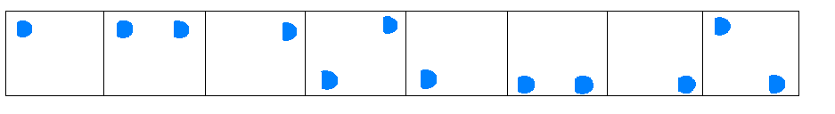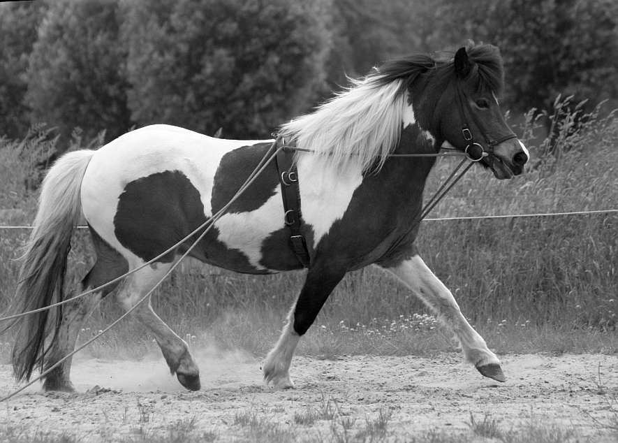 Dit is de voetvolgorde in de tölt: 1 been, lateraal, 1 been, diagonaal, 1 been, lateraal, 1 been, diagonaal etc.